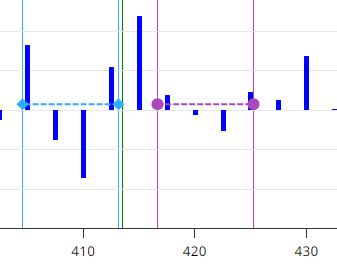 In violetto è la linea che indica il possibile tragitto di un movimento rialzista, il punto di inizio dove potrebbe essere sostenuto e il punto di fine dove dovrebbe essere delimitato.
